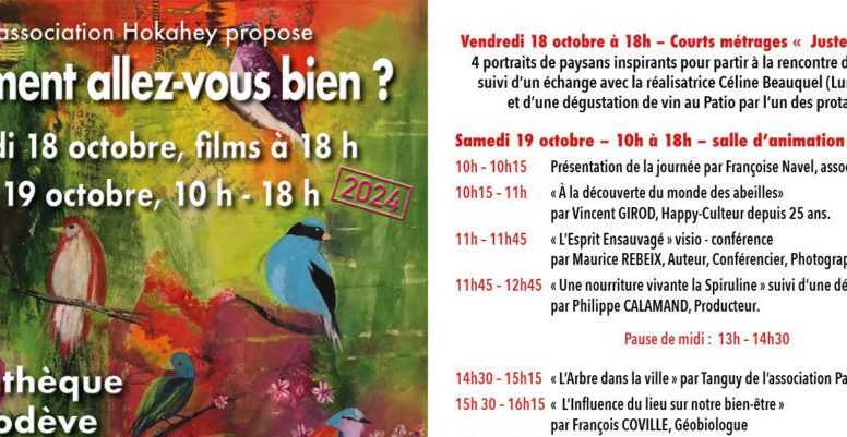 Comme chaque année, l’association Hokahey vous concocte avec délices une journée spéciale « Comment allez-vous bien » à LODEVE, les 18 et 19 octobre.